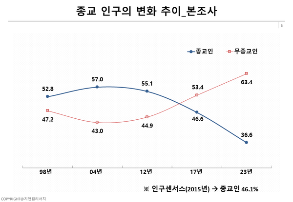 2022년 무종교인 63.4%로 급속한 탈종교화 진행!