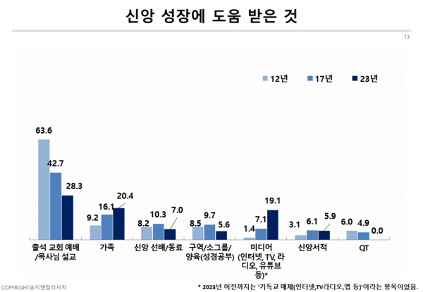 신앙 성장에 도움받은 것, ’미디어‘ 요인 가파르게 상승!