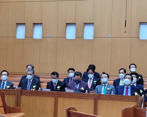 총회는 37개 노회 중 35개 노회에서 283명이 출석으로 개회된 이날 임원선거를 통해 선출된 새로운 임원은 △대표회장 하재삼 목사 △상임부회장 정태영 목사, 유웅상 목사 △부회장 노갑춘 목사, 설안선 목사, 전요섭 목사 △서기 조무영 목사 △부서기 이형만 목사 △회의록서기 최성은 목사 △부회의록서기 전광수 목사 △회계 김화중 장로 △부회계 정종식 장로 △상임총무 한기영 목사 △감사 정래환 목사, 진두석 목사, 이주백 목사이다.