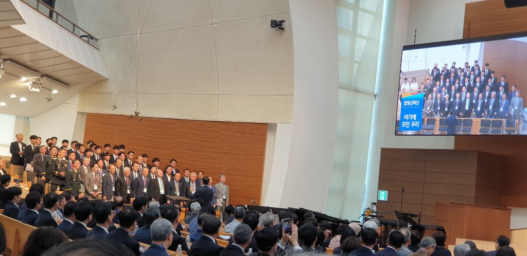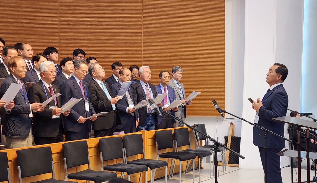 1부 개회예배 설교는 오정호(77,기교) 총회장이 맡았다. 자신의 총신대 재학시절 동료들과 찍었던 사진을 공개하기도 했다.