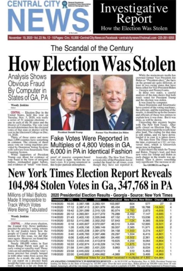 브런슨 사건의 쟁점은 2020년 선거는 쿠데타였다는 것이다. Dominion과 Smartmatic이라는 개표시스템으로 투표를 조작하여 트럼프에게서 수십만 표를 훔쳤다. 뉴욕타임스 선거보고서에 따르면 조지아에서 104,984표가 도난당했고 펜실베이니아에서만 347,768표가 도난당했다. 그래서 2020년 선거가 미국 역사상 가장 큰 사기사건임을 폭로하는 것이다.