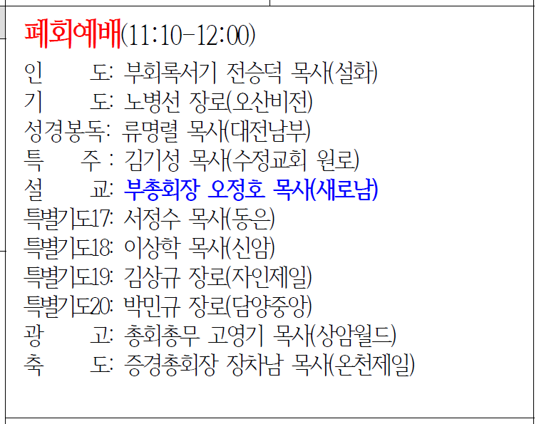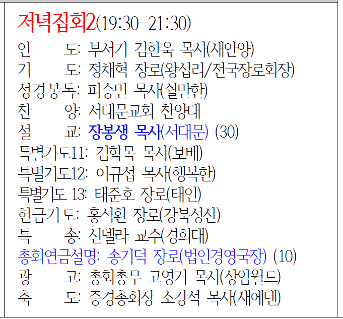 【2023】 목장기도회 순서자 명단