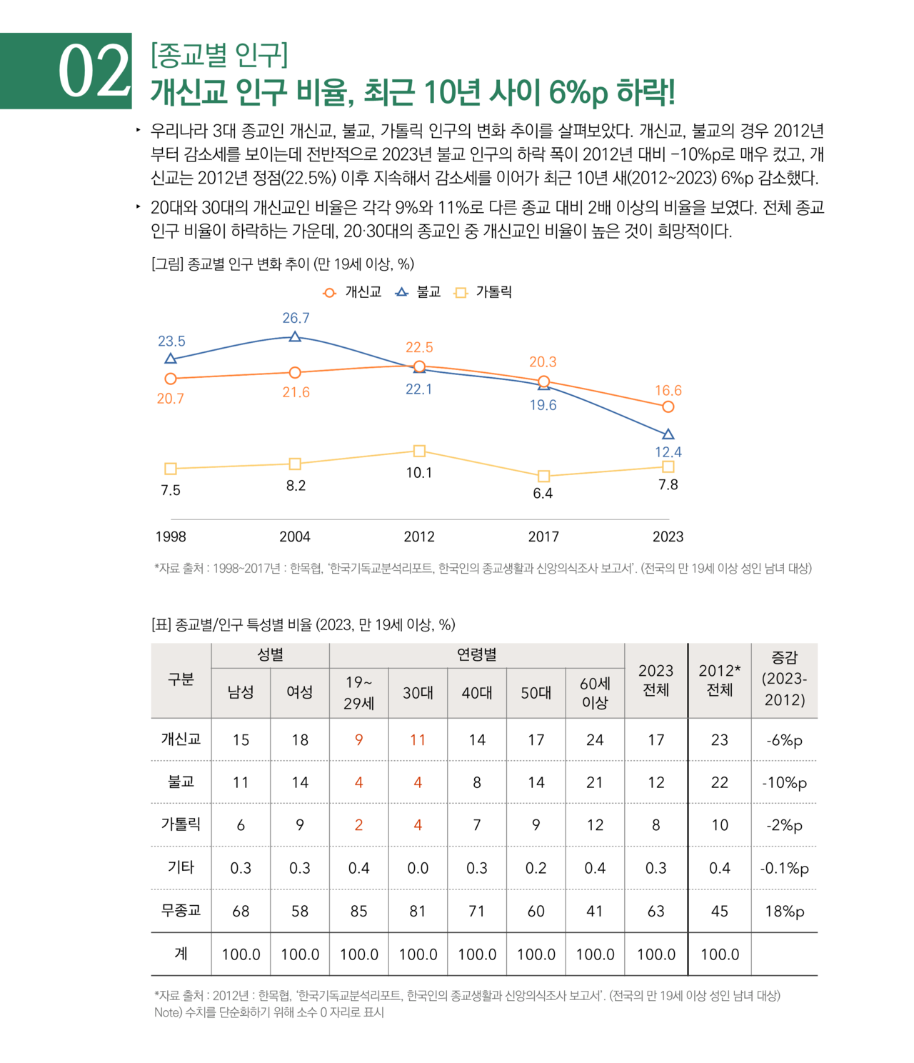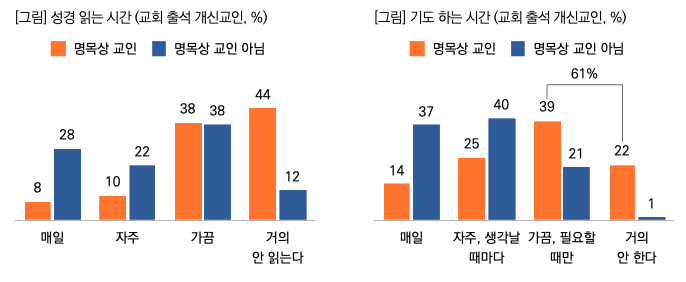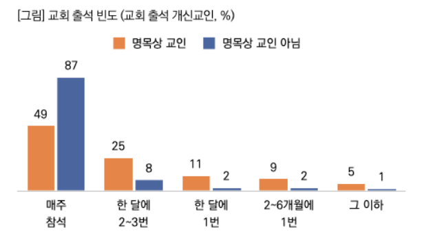 ◎ 명목상 교인 2명 중 1명만이 매주 교회 출석해!