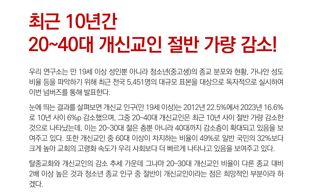 【명목상교인】 출석교인 10명 중 4명(39.5%)