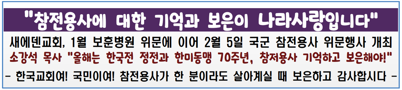 "한국교회여! 국민이여! 참전용사가 한 분이라도 살아계실 때 보은하고 감사합시다."