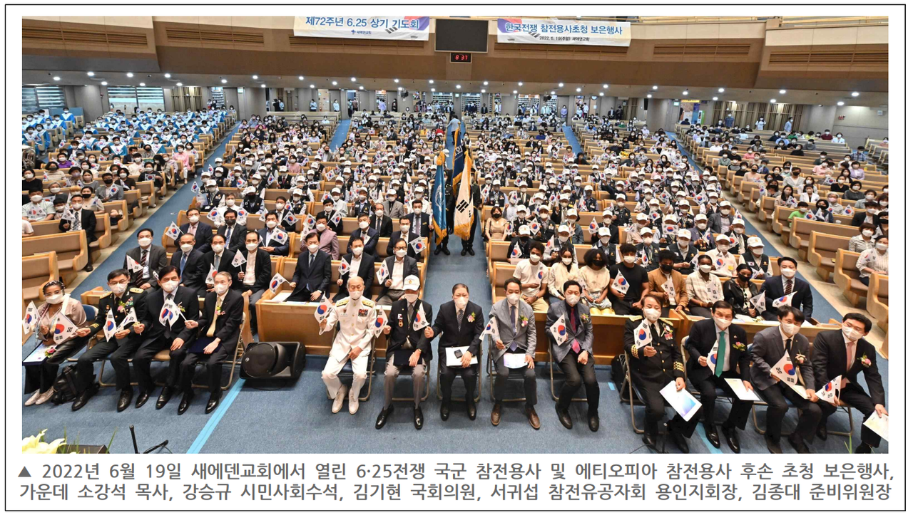새에덴교회(소강석 목사)는 지난 2022년 6월 19일 ‘6.25 제72주년 한국전 참전용사 초청행사’를 갖고 참전용사들의 희생을 기억하는 시간을 가졌다.