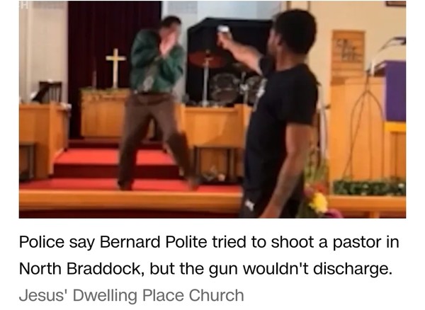 지난 주일(4월 5일), 펜실베니아주에 있는 예수님의 처소 교회 강단을 향하여 총을 든 한 사내가 걸어나왔습니다. 그리고는 설교중인 목사의 얼굴을 향하여 방아쇠를 당겼습니다.
