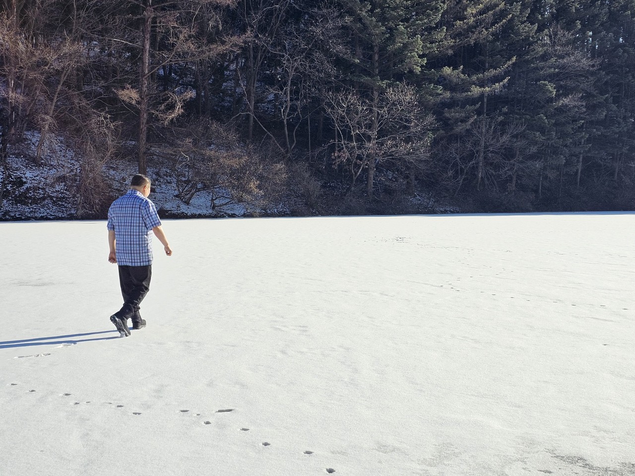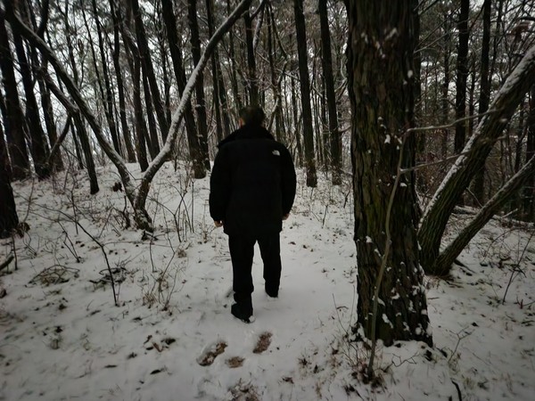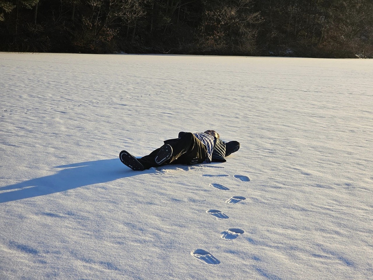 저는 실제로 눈밭에 가면 너무 좋아서 눕기도 하고 저수지 얼음 위에 가면 얼음 위에서도 막 누워버립니다. 그 자체가 동심 천국이 되기 때문이지요. 그래서 발자국 하나 없는 평평한 눈밭에 가서 누워 있으려고 하는데, 동행하던 유송근 장로님이 “목사님, 내일 수요일인데 너무 많이 걸으면 예배에 지장이 됩니다.” 하면서 손을 잡고 자꾸 내려가자고 하시는 것입니다. 사실 저는 무덤이 있는 곳으로 더 향하고 싶었습니다. 거기에도 누구의 발자국도 찍혀있지 않을 것 같아서요. 그런데 유 장로님이 더 이상 가지 말자고 하도 사정을 해서 그냥 내려왔습니다.