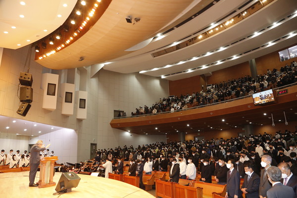 총회 서기 고광석 목사의 사회로 진행된 예배에서 제107회 총회장 권순웅 목사는 “샬롬부흥비전”에 대해 설교 말씀을 전했다. 설교 후 학생대표가 총회장과 부총회장에게 꽃다발을 증정하는 감사의 시간도 가졌다. 예배 후에는 총회와 권순웅 총회장이 함께 신대원 학생들과 교직원들을 위해 1,100만 원의 식사비를 부담하여 점심식사를 대접하였다.