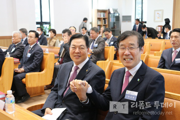총회장을 비롯하여 총회임원들이 총신대학교 신학대학원이 위치한 양지캠퍼스를 방문하여 100주년 기념 예배당에서 총회 주관 예배가 드리고 이후 점심식사와 간담회가 이루어졌다.