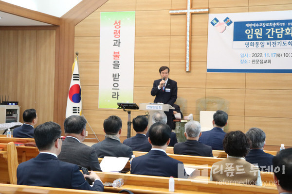 지난 11월 17일 분단의 아픔을 고스란히 간직한 비무장지대 판문점교회에서 예장통합총회(총회장:이순창)와 예장합동총회(총회장:권순웅) 임원들이 간담회 및 평화통일 비전기도회를 갖고 남북평화통일비전 공동선언문을 채택하고 통일운동을 함께 전개할 것을 선포했다.