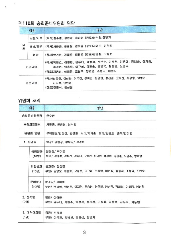 이번 제110회 총준위는 지난 회기와는 달리 한시적으로 운영되며 오는 9월 22일까지 활동하고, 이후 제110회 총회 개최와 함께 종료된다.
