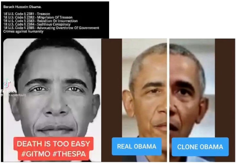 그런데 지금 살아 있는 오바마는 ‘오바마 2.0’(가면을 쓴 가짜 오바마)이고, 진짜 오바마는 진작 관타나모로 끌려가 형장의 이슬로 사라졌다. 트럼프는 지금까지 71,000명에 이르는 딥스 요원들을 체포/구금/처단해 왔다고 하는데, 거물급 딥스, 이를테면 부시/클린턴/힐러리/키신저/빌 게이츠/파우치/낸시 펠로시 등은 전부 처단됐고, 클론을 쓴 가짜들이 살아있는 것처럼 행세하고 있다는 것이 팩트다.
