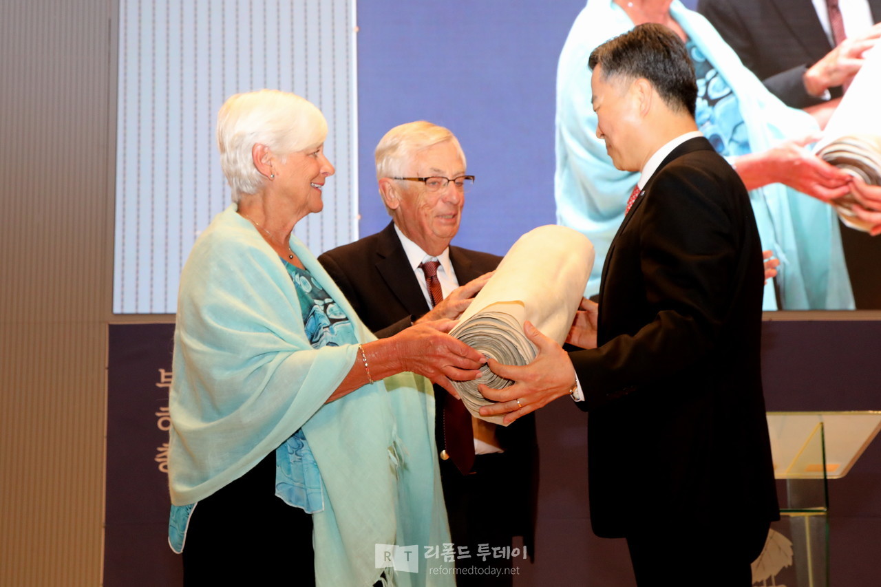 총신대학교 신학대학원 100주년기념예배당에서 토라 기증 감사 예배가 드려졌고, 토라에 대한 기독교 역사적 사실을 짚어보는 특강이 이어졌다. 감사 예배에 앞서 토라 전달식과 이에 화답하여 감사패 전달식이 거행되었다. 켄 라슨과 바바라 라슨이 박성규 총장에게 토라 사본을 전달하였고, 박성규 총장이 라슨 부부와 토라 기증에 중대한 역할을 한 웨스트민스터 피터 릴백 총장에게 감사패를 전달했다.