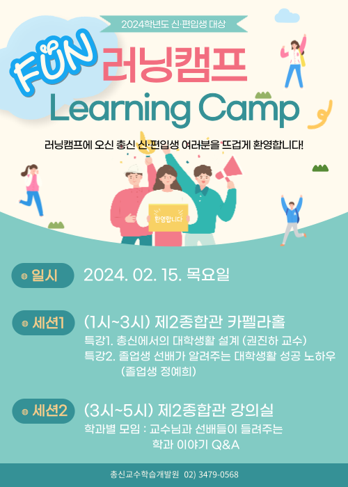 총 1, 2부로 구성된 <Fun 러닝캠프>는 신·편입생의 대학생활 적응 및 학습역량 함양을 지원하는 신·편입생 특화 학습지원 프로그램으로, 총신대학교 교수·학습지원 전담부서인 교수학습개발원(원장: 정한호)이 매년 2월 개최한다.