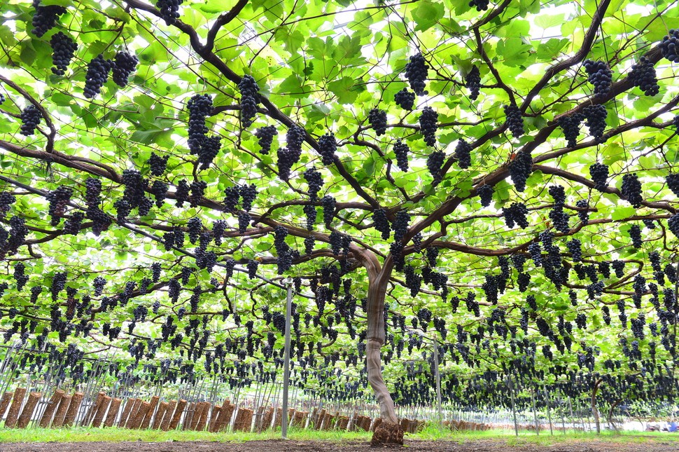 2005년 심은 13년생인 이 슈퍼 포도나무는 이 농장대표의 독특한 농업철학과 유기농법의 결과이다. 지난해에도 이 포도나무에서 3500송이를 수확했단다. 이 농장엔 이 포도나무를 포함해 모두 24그루가 있는데, 그 중에 5그루가 2천송이 이상 열매를 맺었고, 나머지 18그루도 1천송이를 넘겼다.