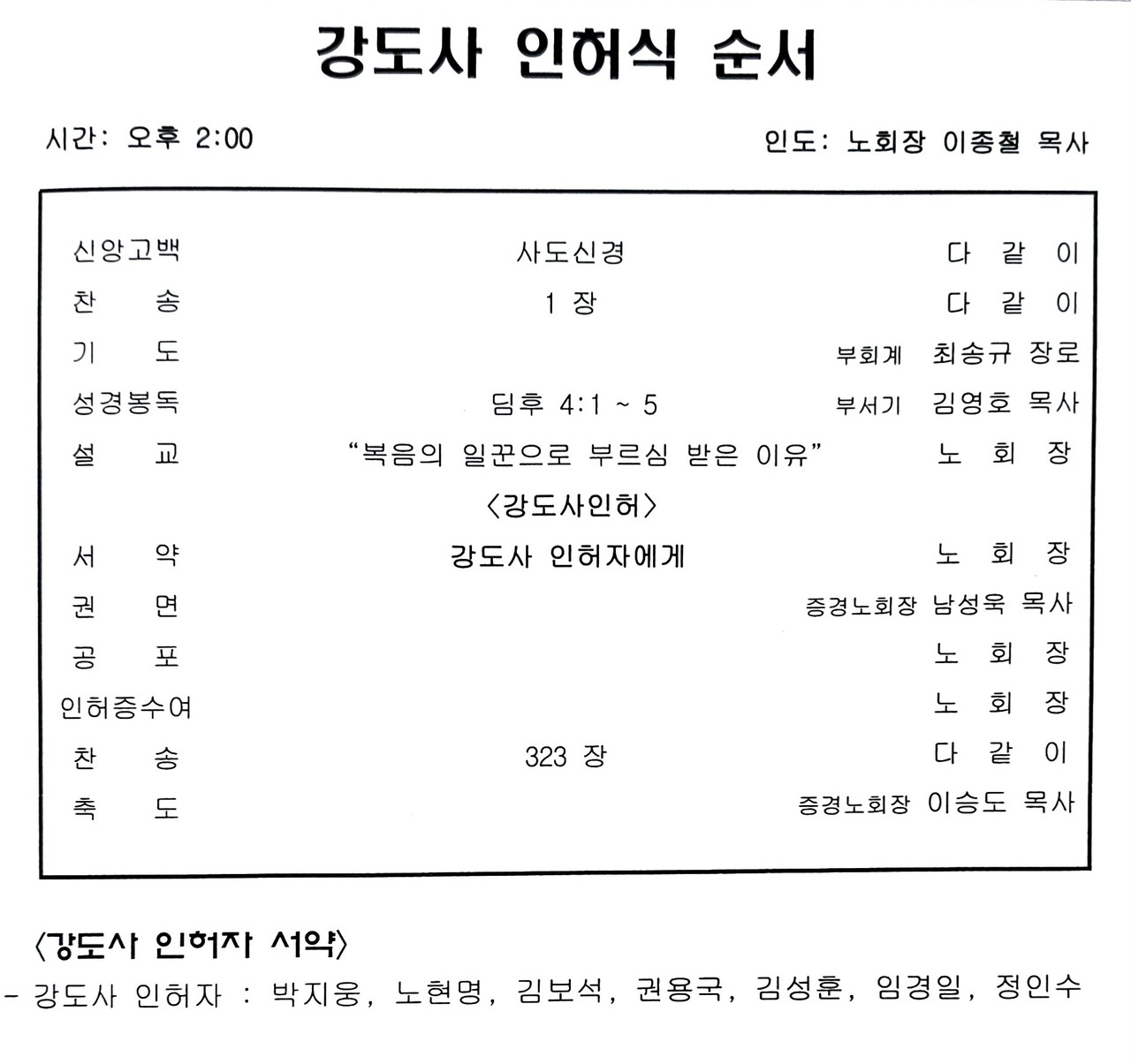 특히 7명의 강도사 인허자들과 그들의 아내와 가족들에게는 살이되고 피가되는 말씀을 전했다. 오랫만에 만난 이광복 장로님도 건강하게 만날 수 있었다.