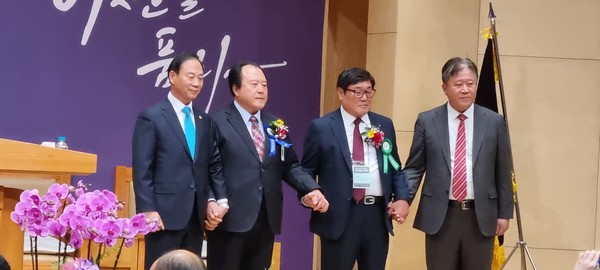 제4부 정기총회를 가졌다. 2시50분부터 4개 구역별로 제55회기 전국장로회연합회 수석부회장 선거가 진행되었다. 선관위원장 오광춘 장로 진행으로 먼저 제55회 회장 이해중 장로를 기립 박수로 추대 했다. 후보자가 7분씩 기호1번 임종환 장로와 기호2번 정종식 장로가 정견 발표를 했다.