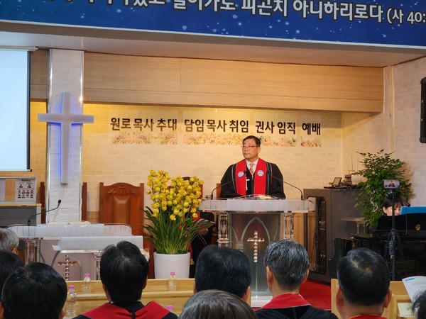 1부예배 설교는 노회장 이진완 목사가 히브리서 6장10절을 중심으로 "가장 아름다운 발걸음"을 선포했다.