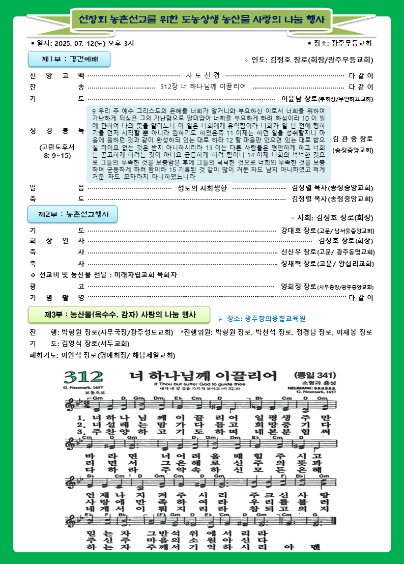 도농생산물 나눔으로 농촌사역자 지원