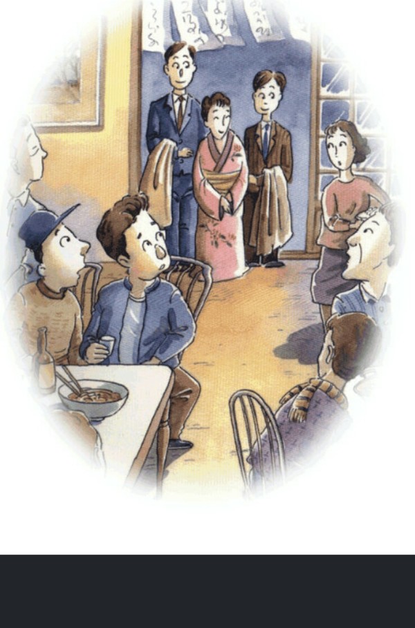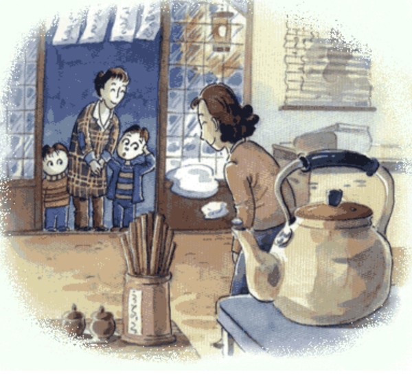 우동을 다 먹고 300엔을 내며 ‘잘 먹었습니다.’라고 깊이깊이 머리를 숙이며 나가는 세 사람을, 주인과 여주인은 일년을 마무리하는 커다란 목소리로, ‘고맙습니다! 새해엔 복 많이 받으세요!’라며 전송했다.