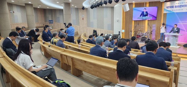 제110회 총회준비위원회(위원장 한수환 목사)가 지난 7월 14일 오전 11시 대전 판암장로교회(홍성현 목사 시무)에서 1차 전체회의로 모였다. 장봉생 부총회장은 "제110회 총회를 정책총회로 만들겠다"는 계획을 밝히고, 그 구체적인 방안을 제시혔다.