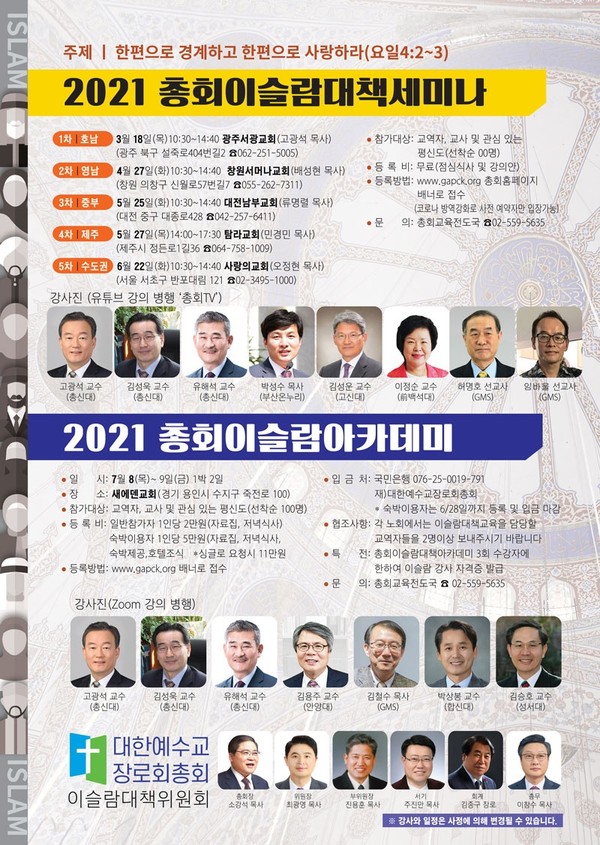 "한편으로 경계하고, 한편으로 사랑하라" 는 주제 아래 2021년 총회 이슬람 세미나가 시작되었다.