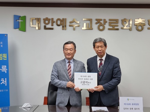 지난 4월 13일 동광주노회(노회장 윤영 목사) 봄 정기회에서 추천을 받은 제106회 총회 부서기 후보 고광석 목사(광주서광교회 담임목사)가 지난 7월 5일 오후 14시, 제106회 총회 선거관리위원회에 임원후보자 등록을 위한 서류를 접수했다.