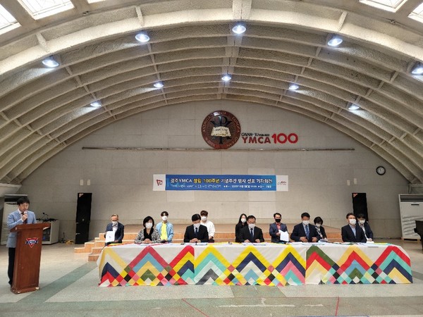 광주YMCA창립 100주년기념행사 선포 기자회견이 지난 10월 5일 광주YMCA 무진관에서 열렸다 .