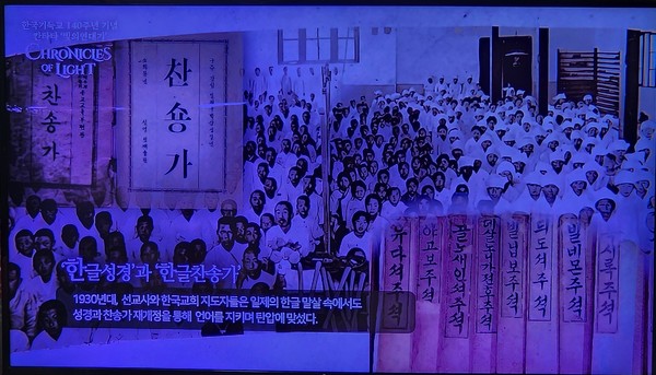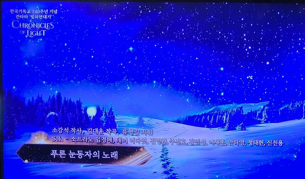 창작 칸타타 <빛의 연대기>는 ‘복음의 꿈을 심다’라는 부제 아래 총 9곡으로 구성되었으며, 내레이션과 솔로, 합창이 어우러진 무대를 선보였다. 칸타타는 1885년 언더우드와 아펜젤러 선교사의 입국을 기점으로 한국기독교의 시작을 알린 ‘빛의 나라’, 선교사들의 헌신을 조명한 ‘푸른 눈동자의 노래’, 1907년 평양대부흥을 다룬 ‘빛의 엑소더스’, 그리고 3.1운동과 일제강점기 신앙의 저항을 표현한 ‘빼앗긴 봄의 별빛 서시’ 등 역사적 사건과 인물들을 깊이 있게 다루었다.