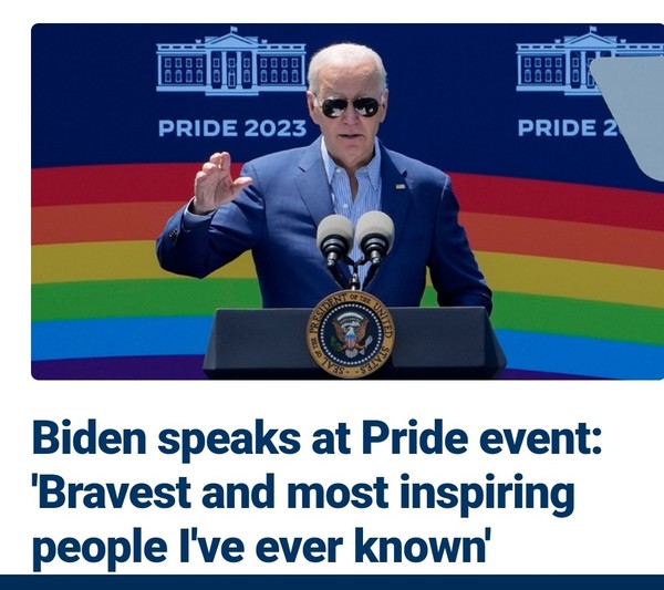 미국 대통령 바이든이 지난 토요일(6월 10일) 백악관 잔디밭에서 있었던 동성애 축제 행사에서 LGBT들을 향하여, "자신이 지금껏 살아오면서 만났던 사람들 중에 가장 용감하고 가장 영감을 주는 사람들"이라고 추켜세우고는 온 세상이 따라야 할 표본이 되라고 칭송했다.