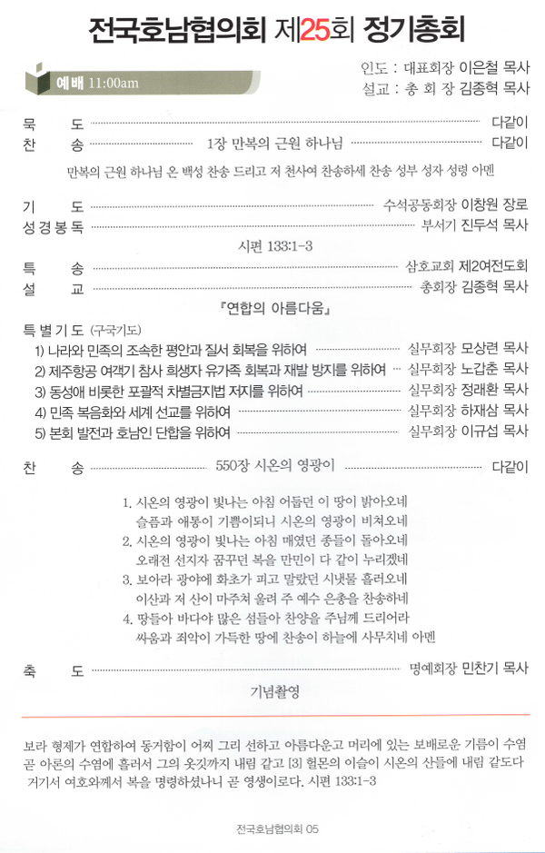 ▶전국호남협의회 제25회기 대표회장 이형만 목사, 상임회장 H○○ 목사