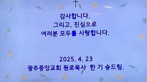 이날 한기승 목사는 참석하지 못하고 편지를 대독했다.