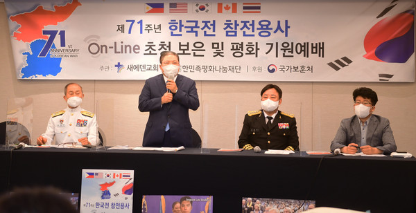 이번 행사에는 미국, 캐나다, 필리핀, 태국 등 해외 4개국 참전용사와 가족 150여명이 동시간대에 새에덴교회 대예배실 중앙에 마련된 LED초대형스크린에 줌으로 화상 초청돼 참여했다. 국군 참전용사 50명은 새에덴교회 현장에 참여하였다.
