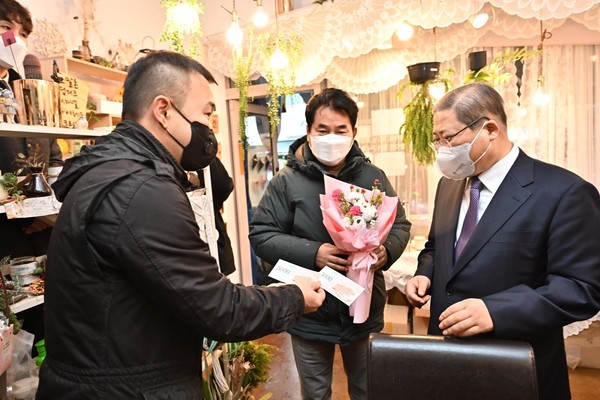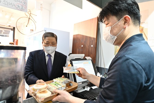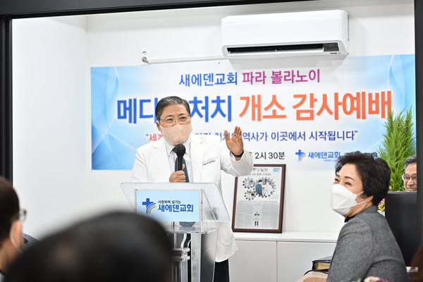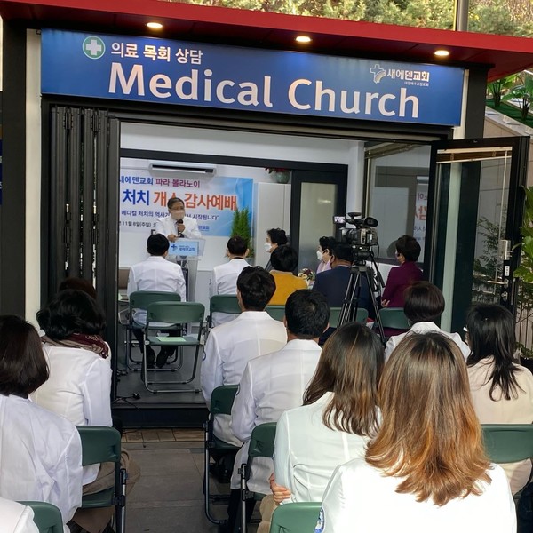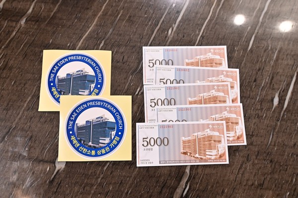 사진은 새에덴교회가 코로나 19 선제방역을 위하여 설치한 메디컬처치와 지역상권을 살리기 위한 소비운동인 선한소통상품권 사용 모습.