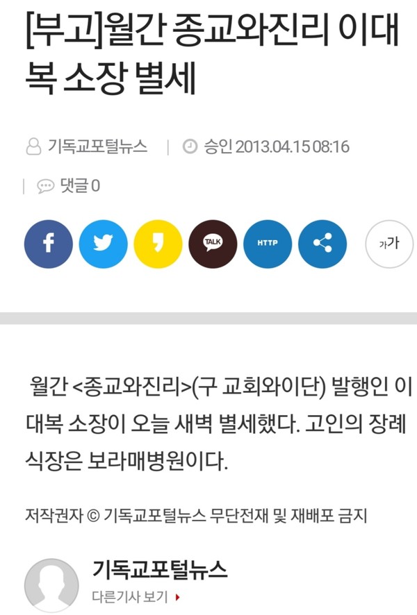 지난 2013년에 암에 걸려 죽은 이대복이 살아서도 생 사람을 잡더니, 이제는 죽어서도 생 사람을 잡는다. 요즘 김 모씨라는 합동교단 사람들은 그 이름 만 대면 누구든지 아는 개인 유투버가 이대복을 흉내내어 아무나 물어 뜯고 있다. 죽은 이대복의 망령이 씌웠나 보다.
