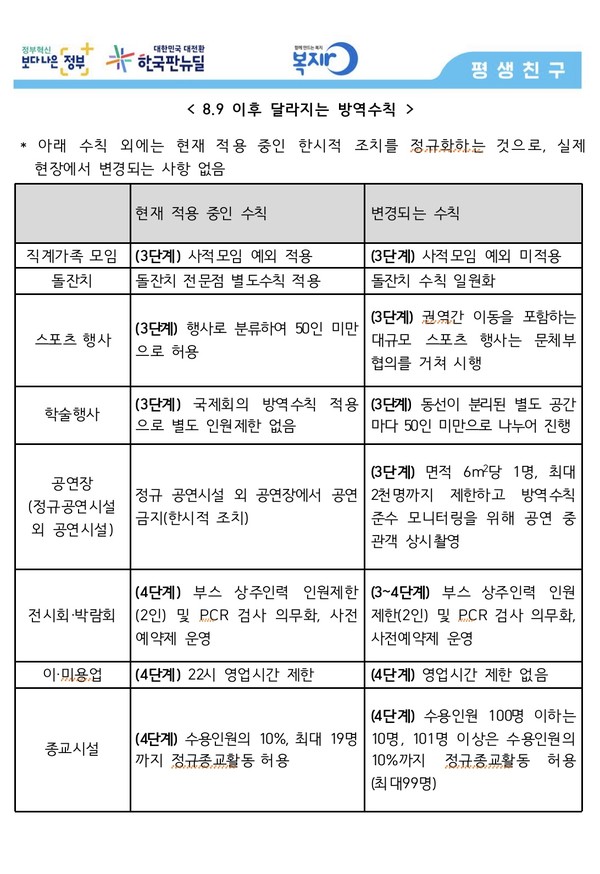 □ 4단계에서 종교시설은 수용인원 100명 이하는 10명, 수용인원 101명 이상은 10%까지 대면 종교활동을 허용하되 최대 99명까지 허용한다.(신규 적용 조치)