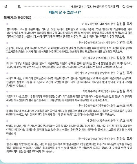 ○ 광복 76주년 한국교회 기념예배 <기념사>