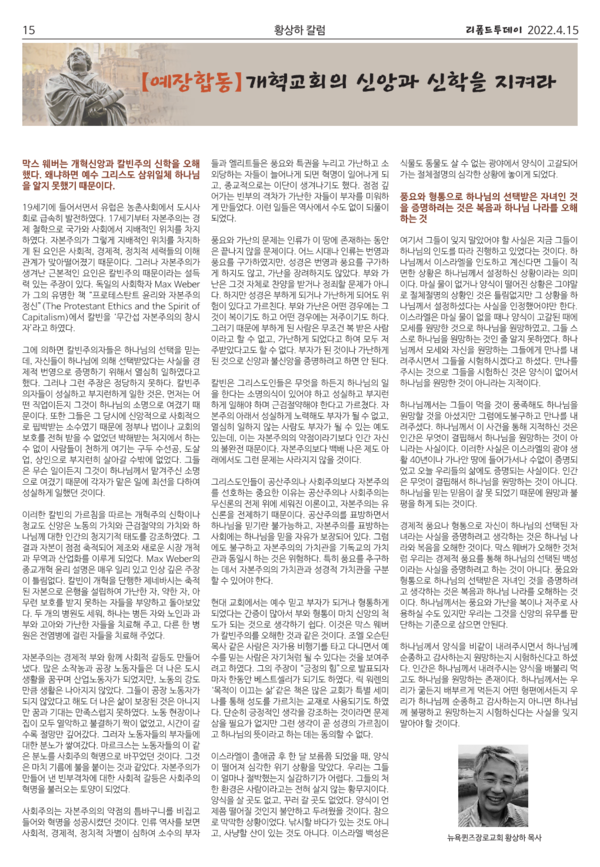 주간 리폼드투데이 4호(부활절호) 15면 게재