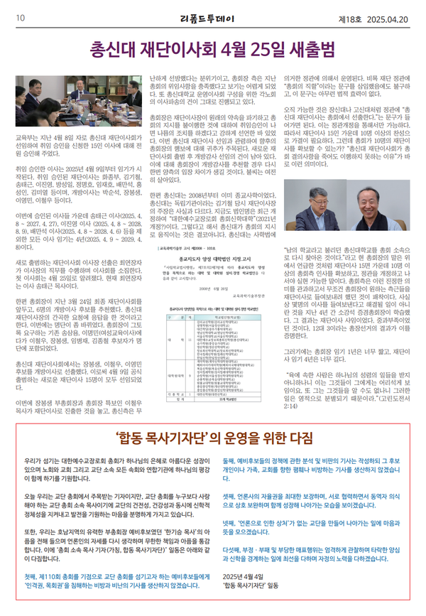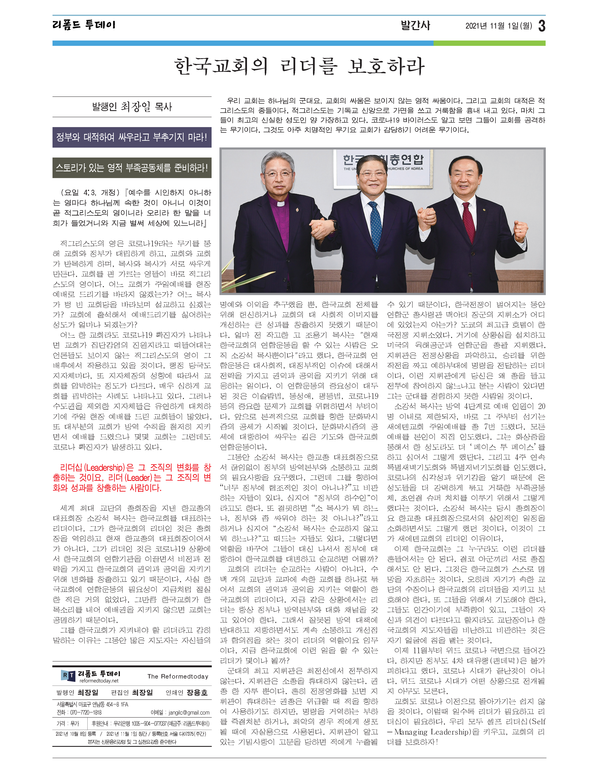 ◆ 리폼드투데이 주간신문 창간호 발행